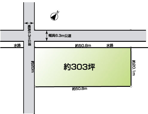 | 接道(全て) | 北西 6.3m(幅員) 50.8m(接面) 南西 6.3m(幅員) 20m(接面) |