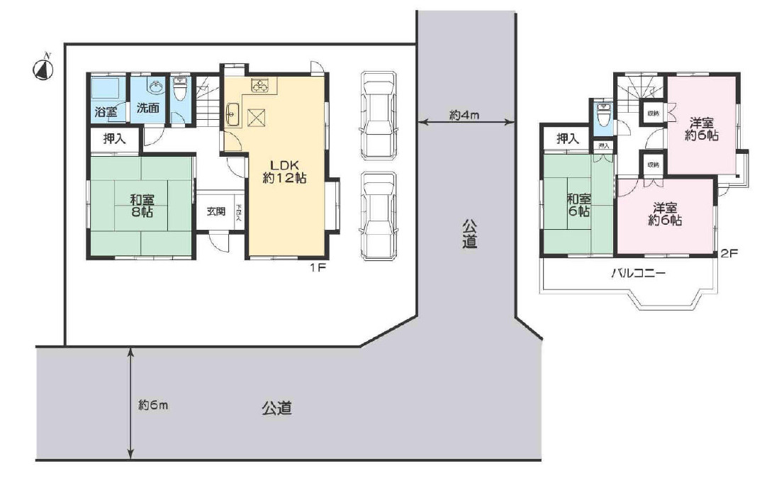 | 接道(全て) | 南 6m(幅員) 東 4m(幅員) |