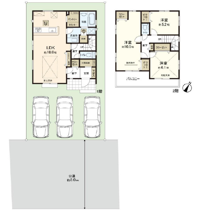 | 特色 | 公営水道、公共下水、都市ガス、【築年】 建築中、南道路、駐車場2台以上、住宅性能評価書取得(予定)、10年保証、フラット35対応、ウォッシュレット付トイレ、シャワー付き洗面化粧台、システムキッチン、TVモニター付インターホン、ペアガラス採用 | ||