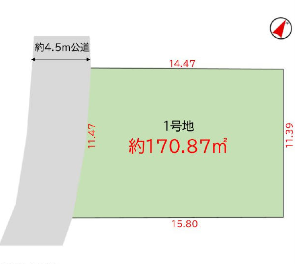 | 接道(全て) | 南西 4.5m(幅員) 公道 11.47m(接面) |