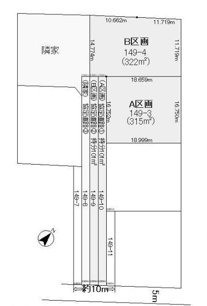 | 接道(全て) | 南東 6m(幅員) 協定道路 南 5m(幅員) 私道 |