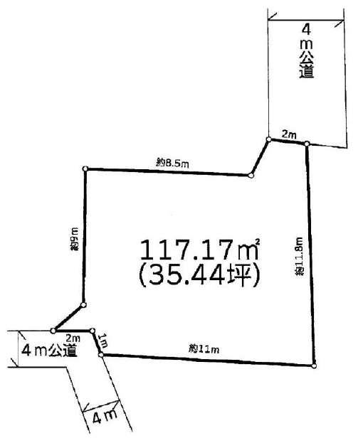 | 接道 | 北 4m(幅員) 公道 2m(接面) 南 4m(幅員) 公道 3m(接面) |