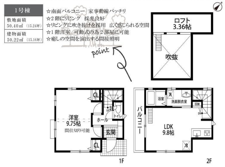 敷地面積      :50.4㎡(15.24坪)