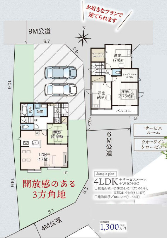 土地面積 :231.42㎡(70坪)