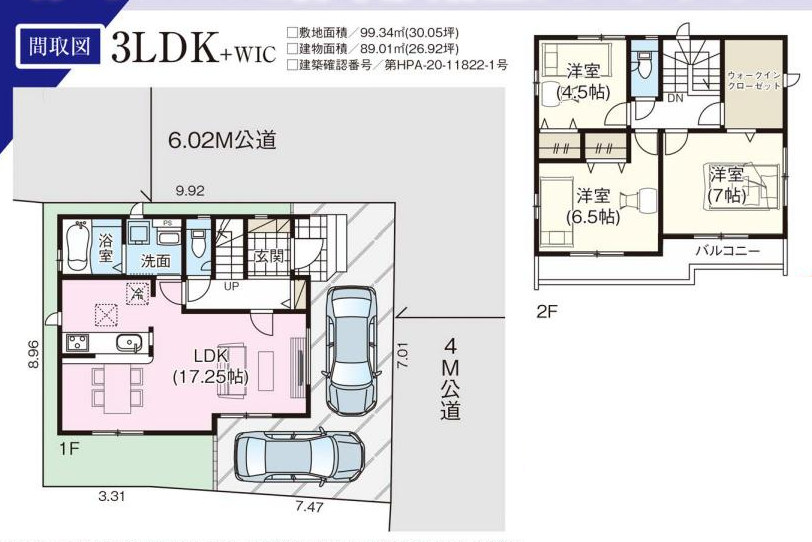 建物延床面積 :89.01㎡(26.92坪)