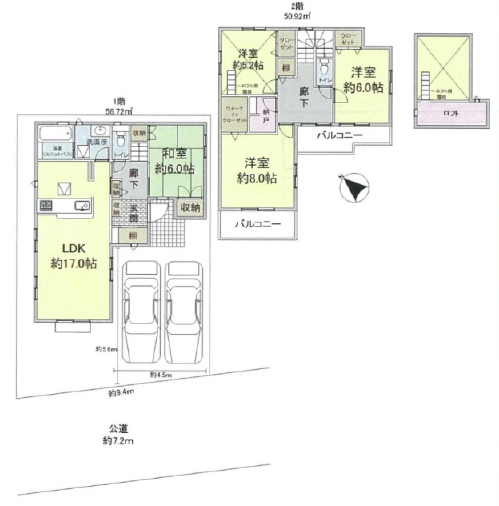 南西 7.2m(幅員) 公道 9.4m(接面)
