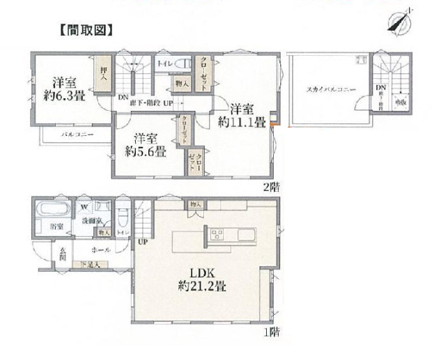 上尾市愛宕1丁目 全2棟 A号棟 【新築一戸建て/販売事例集】