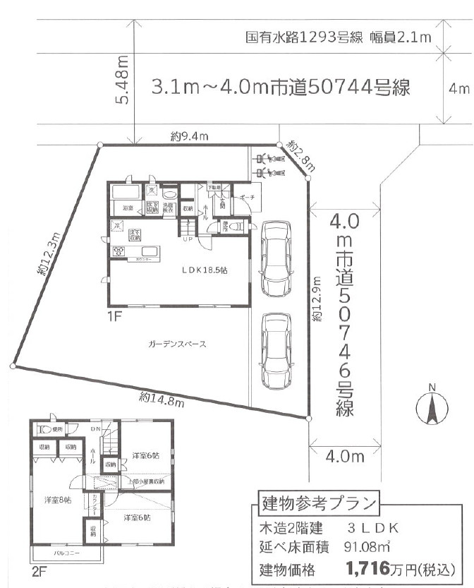 北 4m(幅員) 公道 9.4m(接面)