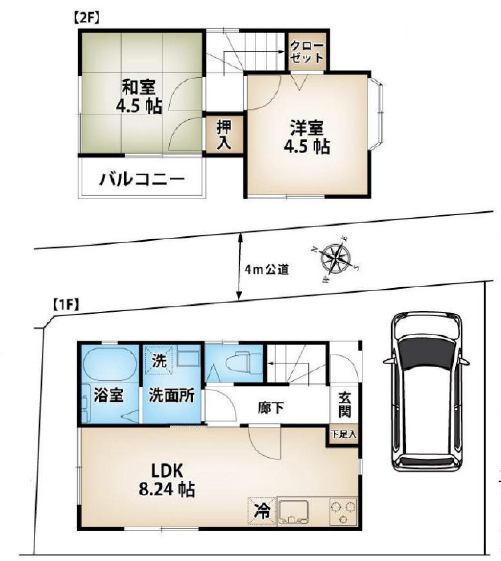 北東 4m(幅員) 公道 9m(接面)