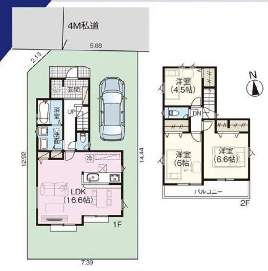 北 4m(幅員) 私道 5.88m(接面)