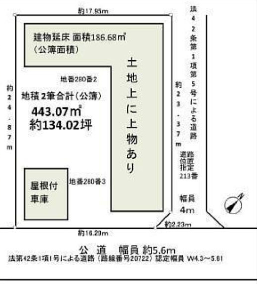 南東 5.6m(幅員) 公道 16.29m(接面)