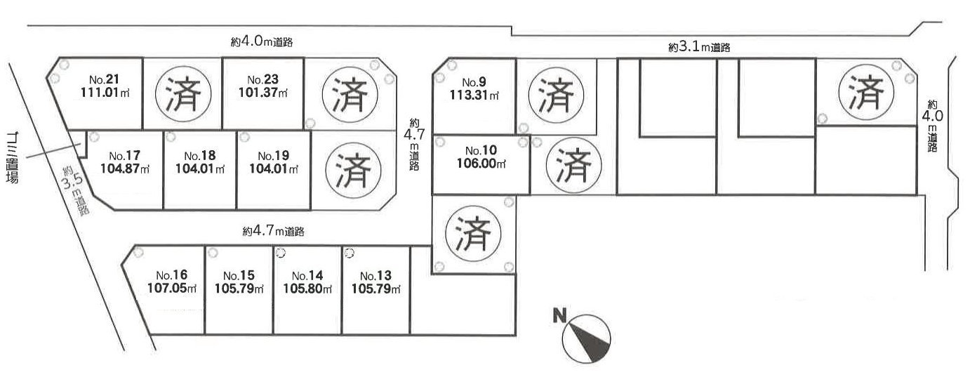 ★約4.7mの位置指定道路は接面する13区画で持分有り(将来上尾市に採納予定)