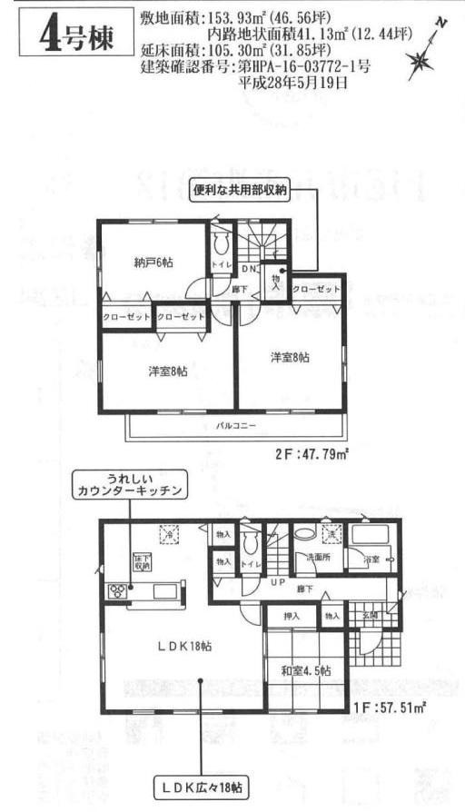 建物延床面積 :105.3㎡(31.85坪)