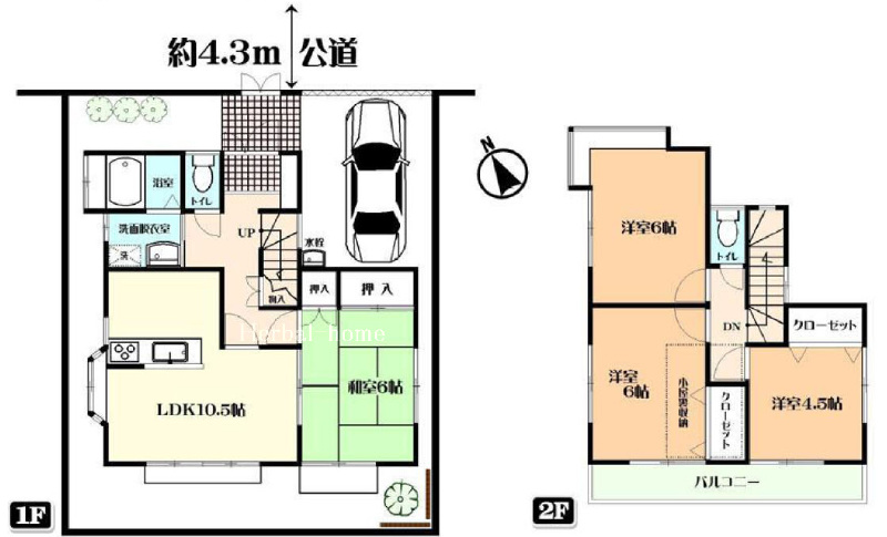 北東 4.3m(幅員) 公道