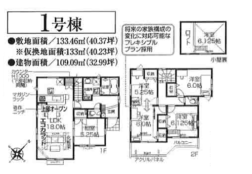 建物延床面積 :109.09㎡(32.99坪)