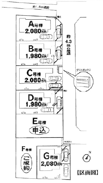 北東 4.3m(幅員) 公道