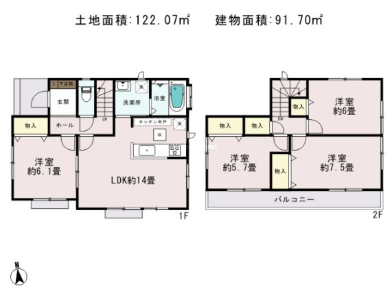 建物延床面積   :91.7㎡(27.73坪)