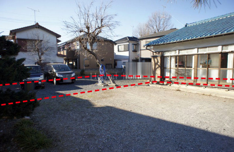 ★写真を撮影してきてございますが、写真を見ただけでは殆どイメージが湧かないと思います。現在の建物(青い屋根)を壊して北側隣地沿いに路地状敷地が延びます。本地部分は写真奥に見える更地部分ではなく車が停まっているところになります。