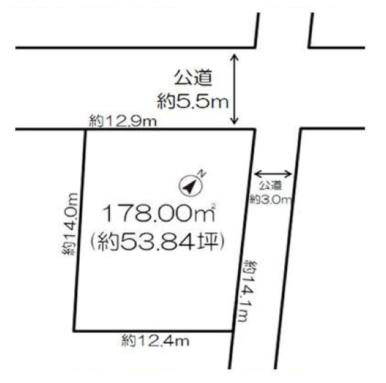 北西 5.5m(幅員) 公道 12.9m(接面)
