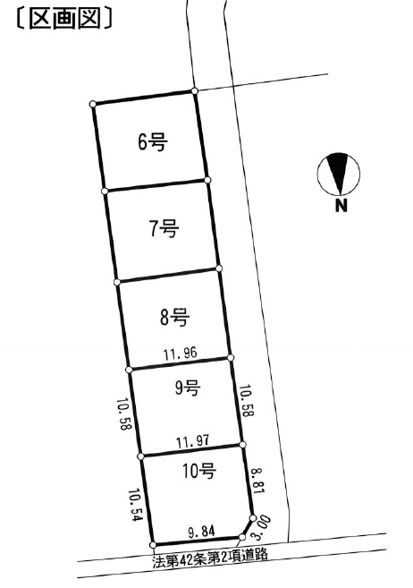 ★10画地北側の道路は未舗装ですが、通り抜けは出来ます。逆に6画地の南および西に道が抜けていますので、こちらから出入りした方が閑静な住宅地の雰囲気が味わえると思います。