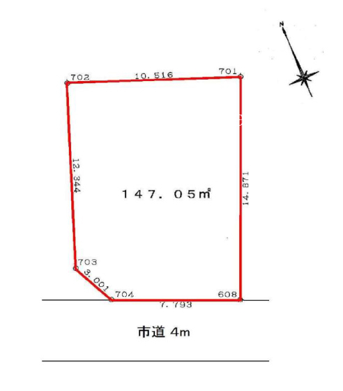 南西 4m(幅員) 私道 7.793m(接面)