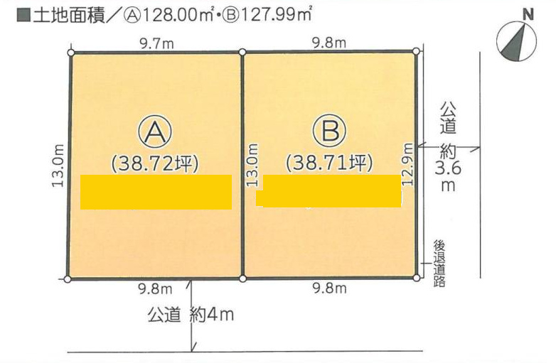 北東 3.6m(幅員) 公道 12.9m(接面)