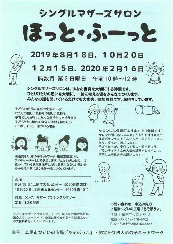 12月15日(日)午前10時より シングルマザーズサロンが 上尾市文化センターにて開催されます (上尾市つどいの広場「あそぼうよ」主催) 。