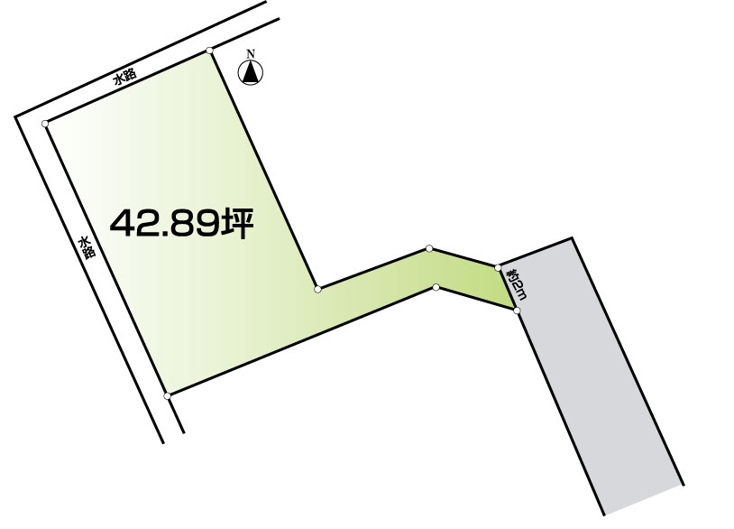 ★通路部分の幅員が2mの路地状敷地。駐車は難しいかも知れません