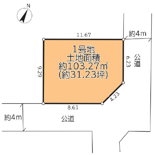 北東 4m(幅員) 公道 6.23m(接面)