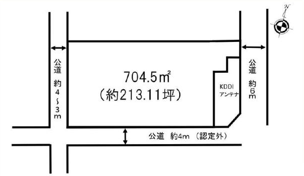 特色 :電気、プロパンガス、角地、両面道路、南道路、側溝、公共下水、建築条件なし