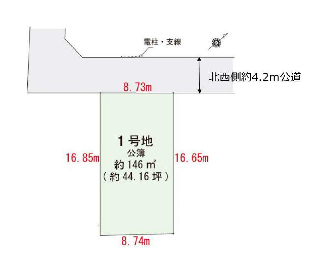 北西 4.2m(幅員) 公道 8.73m(接面)